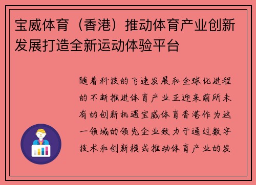随着科技的飞速发展和全球化进程的不断推进,体育产业正迎来前所未有的创新机遇。宝威体育(香港)作为这一领域的领先企业,致力于通过数字技术和创新模式推动体育产业的发展,打造全新的运动体验平台。本篇文章将围绕宝威体育(香港)如何通过多方位的创新措施推动体育产业的变革,具体分析其在运动科技、数字化平台建设、内容创意和国际化发展等方面的战略布局。从这几个方面出发,探讨宝威体育(香港)如何引领未来体育产业的变革,提供全新的运动体验,满足日益变化的市场需求。